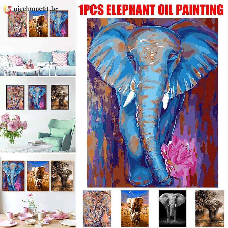 Personalizado Pintura Por Numeros Diy Pintura A Oleo Por Numero Imagem Desenho Elefante Lona Padrao Shopee Brasil