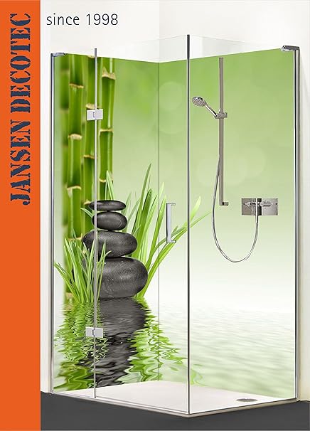 Paroi de douche d'angle - 2 segments - 90 x 200 cm - Motif : pierres zen et bambou - Découpe gratuite au format souhaité.: Amazon.fr: Bricolage