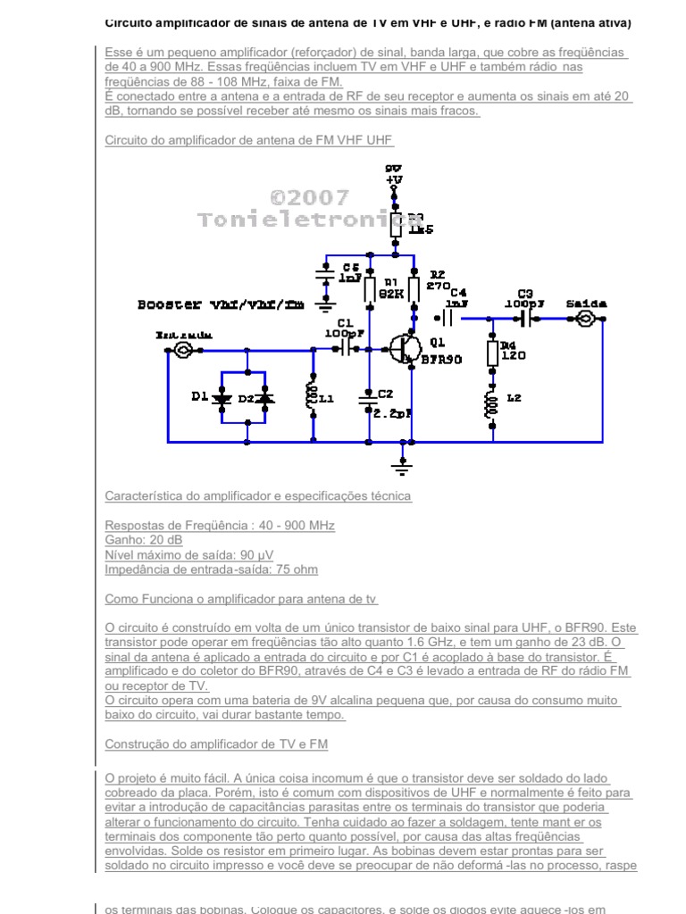 Circuito Amplificador de Sinais de Antena de TV Em VHF e UHF | Frequência Muito Alta | Transistor