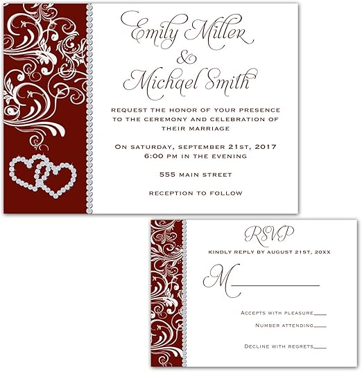 Amazon Com 100 Wedding Invitations Rhinestone Diamond Burgundy Silver Design Envelopes Response Cards Set Kitchen Dining